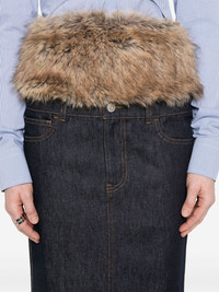 faux-fur hybrid midi skirt Highlights - Indigo blue - Concealed fly and button fastening - Belt loops - Two rounded pockets to the sides - Rear slit Made in Italy Composition Outer: Cotton 100%, Polyester 100%, Polyamide 72%, Elastane 28% Lining: Polyester 65%, Cotton 35% SIZE & FIT Model measurements Height 5 ft 9 in(1.75 m) Bust/Chest 34.64 in(88 cm) Hips 36.61 in(93 cm) Waist 26.37 in(67 cm) FittingInformation This midi-length skirt is intended to be worn high on the waist The elasticated waist allows for a comfortable fit Sturdy and hard-wearing, this denim piece offers no stretch