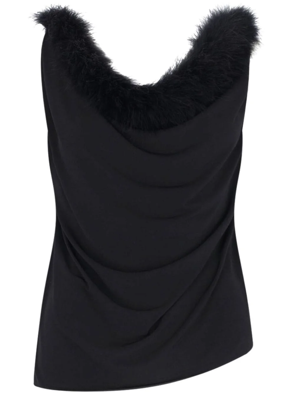 feather-detailing top Highlights - Black - Stretch-design - Feather detailing - Mock neck - Sleeveless - Straight hem Made in Italy Composition Polyester 95%, Spandex/Elastane 5% SIZE & FIT FittingInformation Designed for a slim fit that sits just away from the body offering a close yet comfortable fit Made from a lightweight stretch fabric, this piece offers elasticity and flexibility when worn