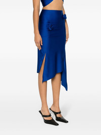 floral-applique asymmetric midi skirt Coperni spotlights its romantic side with this asymmetric midi skirt. It’s rendered in blue and adorned with delicate floral appliques. Highlights - Blue - Stretch-design - Floral applique - Pull-on style - Side slits - Unlined - Asymmetric hem Made in France Composition Polyamide 80%, Spandex/Elastane 20% SIZE & FIT Model measurements Height 5 ft 10 in(1.77 m) Bust/Chest 31.88 in(81 cm) Hips 36.22 in(92 cm) Waist 24.01 in(61 cm) FittingInformation Designed with an asymmetric hem, this skirt is intended to be worn high on the waist Made from a lightweight stretch fabric, this piece offers elasticity and flexibility when worn This piece fits true to size – take your usual size Washing instructions Machine Wash