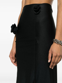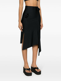 floral-applique asymmetric midi skirt A slashed silhouette with a botanical twist: this black Coperni skirt is spliced from panels of lustrous stretch jersey to create splits at asymmetric hem then embellished with rosettes at the front. Highlights - Black - Stretch-jersey - Satin finish - Panelled design - Seam detailing - High-waisted - Floral applique - Two front slits - Mid-length - Asymmetric hem Made in France Composition Polyamide 80%, Elastane 20% SIZE & FIT Model measurements Height 5 ft 10 in(1.78 m) Bust/Chest 32.67 in(83 cm) Hips 35.43 in(90 cm) Waist 23.22 in(59 cm) FittingInformation Designed with an asymmetric hem, this skirt is intended to be worn high on the waist Made from a midweight stretch fabric, this piece offers elasticity and flexibility when worn This piece fits true to size – take your usual size Washing instructions Machine Wash