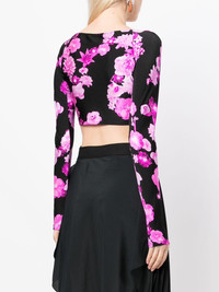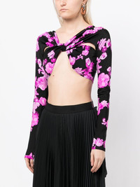 floral-print cropped top black pink knot detailing all-over floral print long sleeves cropped Imported Composition Polyamide 80%, Elastane 20% SIZE & FIT Model measurements Height 5 ft 9 in(1.76 m) Bust/Chest 31.1 in(79 cm) Hips 35.03 in(89 cm) Waist 24.4 in(62 cm) FittingInformation Designed for a close fit throughout Cropped in length Made from a midweight stretch fabric, this piece offers elasticity and flexibility when worn Washing instructions Machine Wash