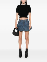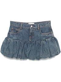gathered-hem denim mini skirt