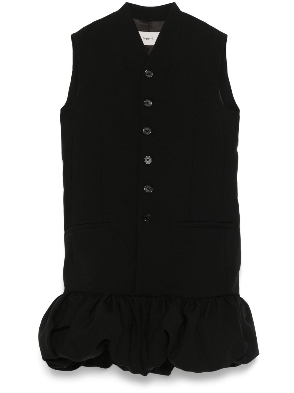 gathered tailored mini dress Highlights - Black - Front button fastening - Two front welt pockets - Sleeveless - V-neck Made in France Composition Outer: Recycled Polyester 100% Lining: Acetate 52%, Viscose 48% SIZE & FIT Model measurements Height 5 ft 9 in(1.76 m) Bust/Chest 31.1 in(79 cm) Hips 36.61 in(93 cm) Waist 24.8 in(63 cm) FittingInformation Designed for a slim fit that sits just away from the body offering a close yet comfortable fit Made from a midweight non-stretch fabric