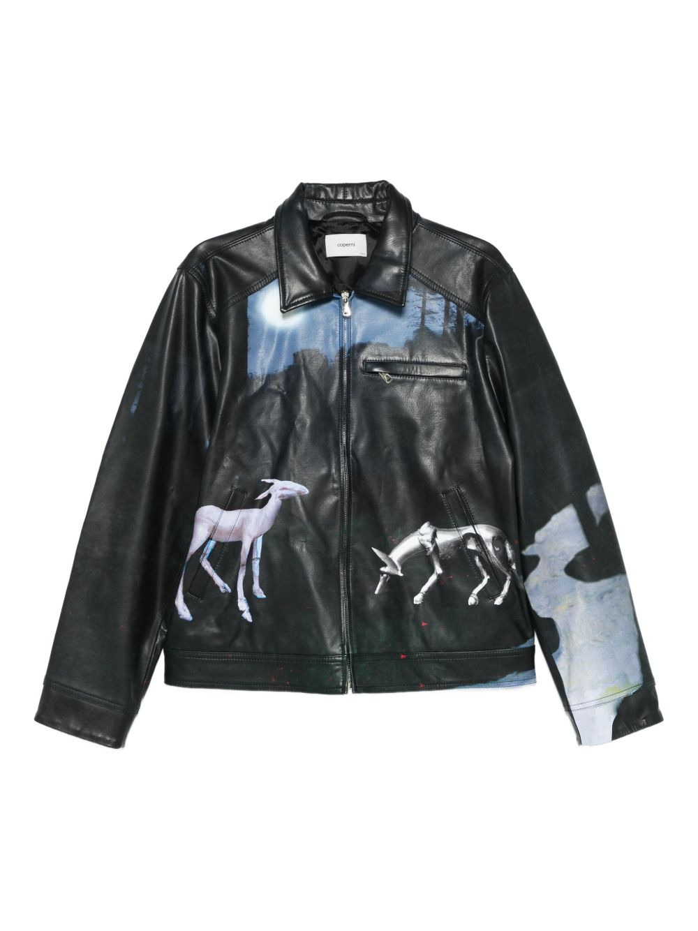 graphic-print jacket Highlights - Black - Graphic print - Zip fastening - Polo collar - Welt pockets - Long sleeves Made in Italy Composition Lining: Viscose 100% Outer: Polyester 44%, Polyurethane 28%, Viscose 28% SIZE & FIT Model measurements Height 6 ft 1 in(1.85 m) Bust/Chest 35.82 in(91 cm) Hips 37.79 in(96 cm) Waist 29.13 in(74 cm) Washing instructions Dry Clean Only