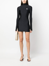 high-neck mini dress Highlights - Black - Stretch-design - Logo print at the chest - Mock neck - Long sleeves - Straight hem - Thigh-length Imported Composition Polyamide 80%, Elastane 20% SIZE & FIT Model measurements Height 5 ft 11 in(1.8 m) Bust/Chest 31.49 in(80 cm) Hips 36.22 in(92 cm) Waist 25.59 in(65 cm) Measurement LENGTH 31.49 in(80 cm) WAIST 25.98 in(66 cm) BUST 29.13 in(74 cm) Shoulder Width 13.38 in(34 cm)