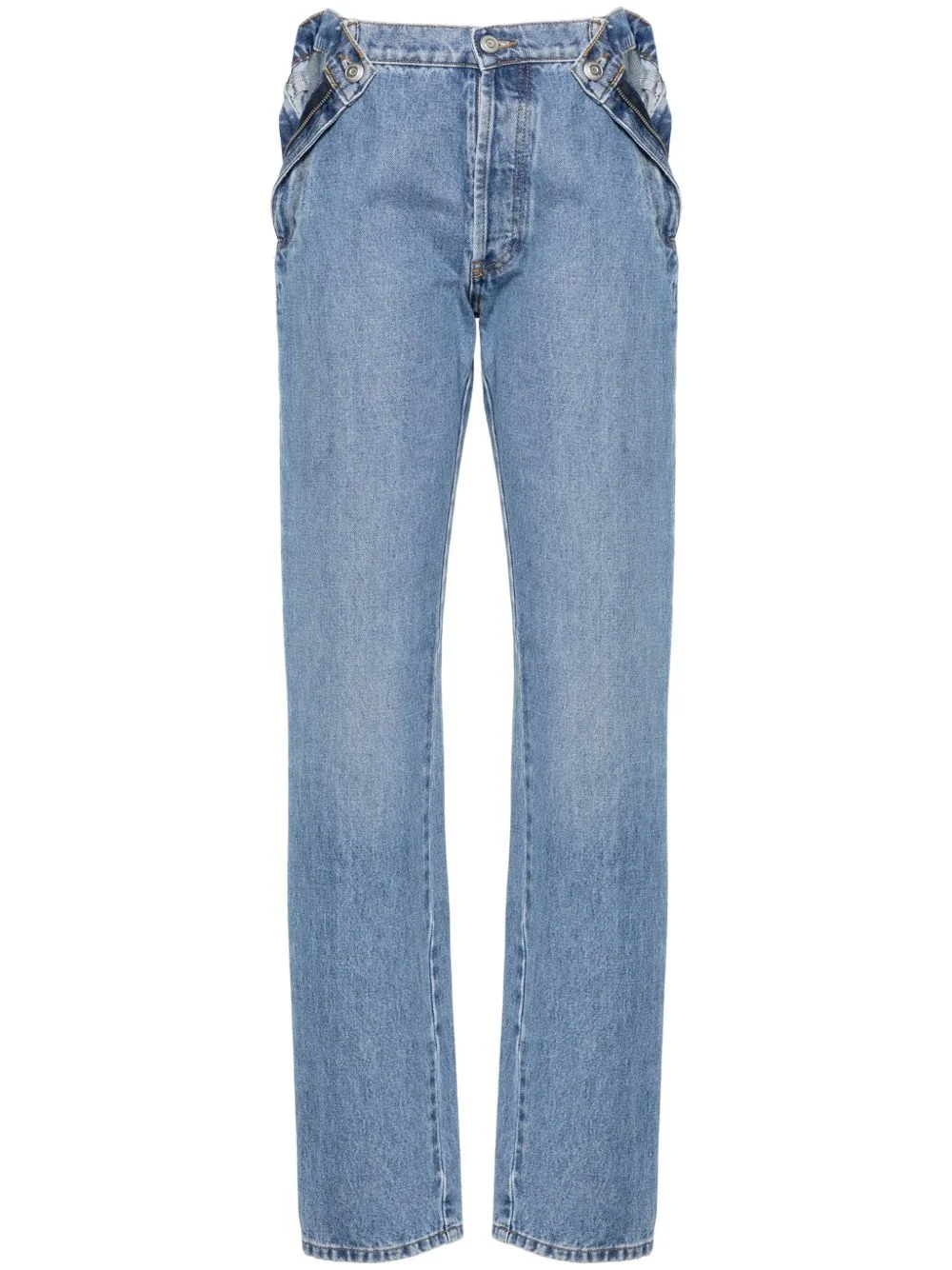Open Hip straight-leg jeans Highlights - Indigo blue - Cotton - Washed denim - Contrast stitching - Cut-out detailing - High-rise - Belt loops - Front button fastening - Side zip fastening - Two rear patch pockets - Straight leg Made in Italy Composition Cotton 100% SIZE & FIT Model measurements Height 5 ft 10 in(1.79 m) Bust/Chest 31.49 in(80 cm) Hips 35.03 in(89 cm) Waist 23.62 in(60 cm) FittingInformation Designed for a straight-leg fit, these jeans allow for a close fit at the waist and an unrestricted and comfortable fit over the leg Sturdy and hard-wearing, this denim piece offers no stretch This piece fits true to size – take your usual size Washing instructions Machine Wash