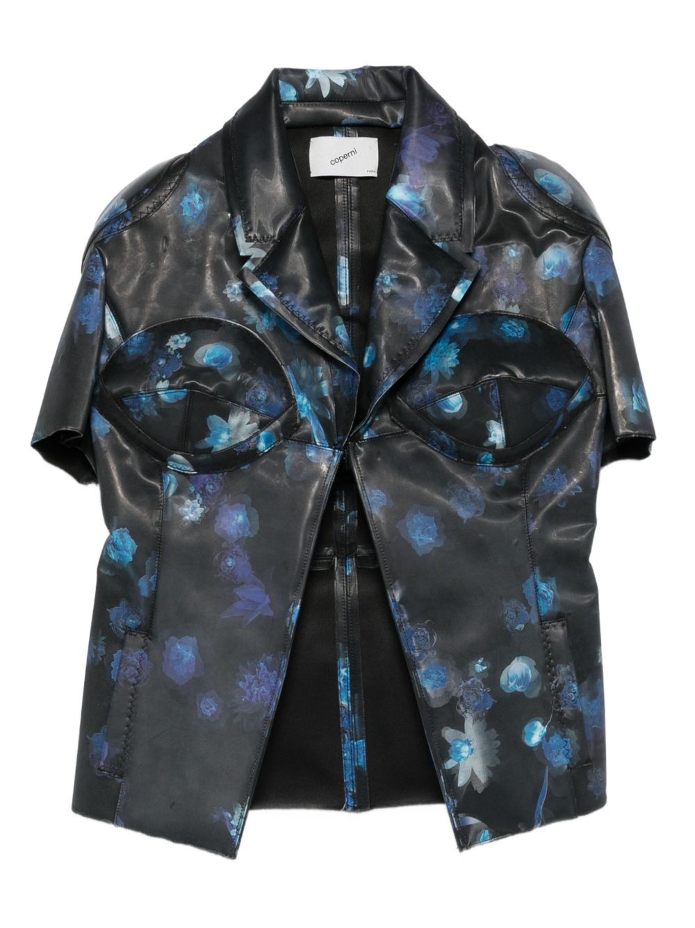 holographic floral-print jacket Highlights - Blue/black - Floral print - Short sleeves - Cup detail Imported Composition Polyurethane 100%, Polyester 100%, Acetate 57%, Viscose 43% SIZE & FIT Model measurements Height 5 ft 10 in(1.77 m) Bust/Chest 32.28 in(82 cm) Hips 35.03 in(89 cm) Waist 25.19 in(64 cm) Washing instructions Hand Wash