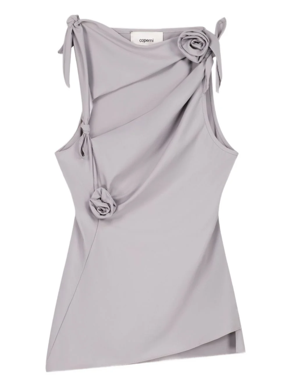 knotted flower top Highlights - Grey - Asymmetrical design - Flower detail - Sleeveless - Cut-out detail Made in France Composition Polyamide 100% Washing instructions Read Manufacturer Guidelines