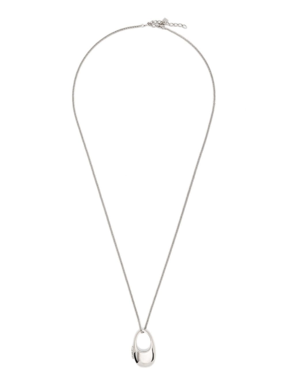 Locket brass necklace Highlights - Silver-tone - Brass - Polished finish - Oval-shaped locket pendant - Delicate chain - Logo charm - Lobster claw fastening Made in Italy SIZE & FIT Measurement Minimum Length 23.62 in(60 cm) PENDANT LENGTH 1.22 in(3.1 cm) PENDANT WIDTH 0.78 in(2 cm) TOTAL LENGTH 25.39 in(64.5 cm)