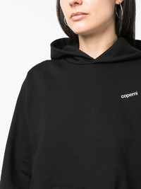 logo-print cotton hoodie black classic hood logo print to the front logo stamp to the rear long sleeves ribbed cuffs elasticated hem Imported Composition Polyester 52%, Cotton 48% SIZE & FIT Model measurements Height 5 ft 11 in(1.8 m) Bust/Chest 33.07 in(84 cm) Hips 37.4 in(95 cm) Waist 25.19 in(64 cm) Measurement SLEEVE LENGTH 22.83 in(58 cm) LENGTH 24.8 in(63 cm) BUST 37.79 in(96 cm) Shoulder Width 19.29 in(49 cm) FittingInformation This piece fits true to size. We recommend you get your regular size Cut for a relaxed fit Made with a mid-weight fabric Washing instructions Machine Wash