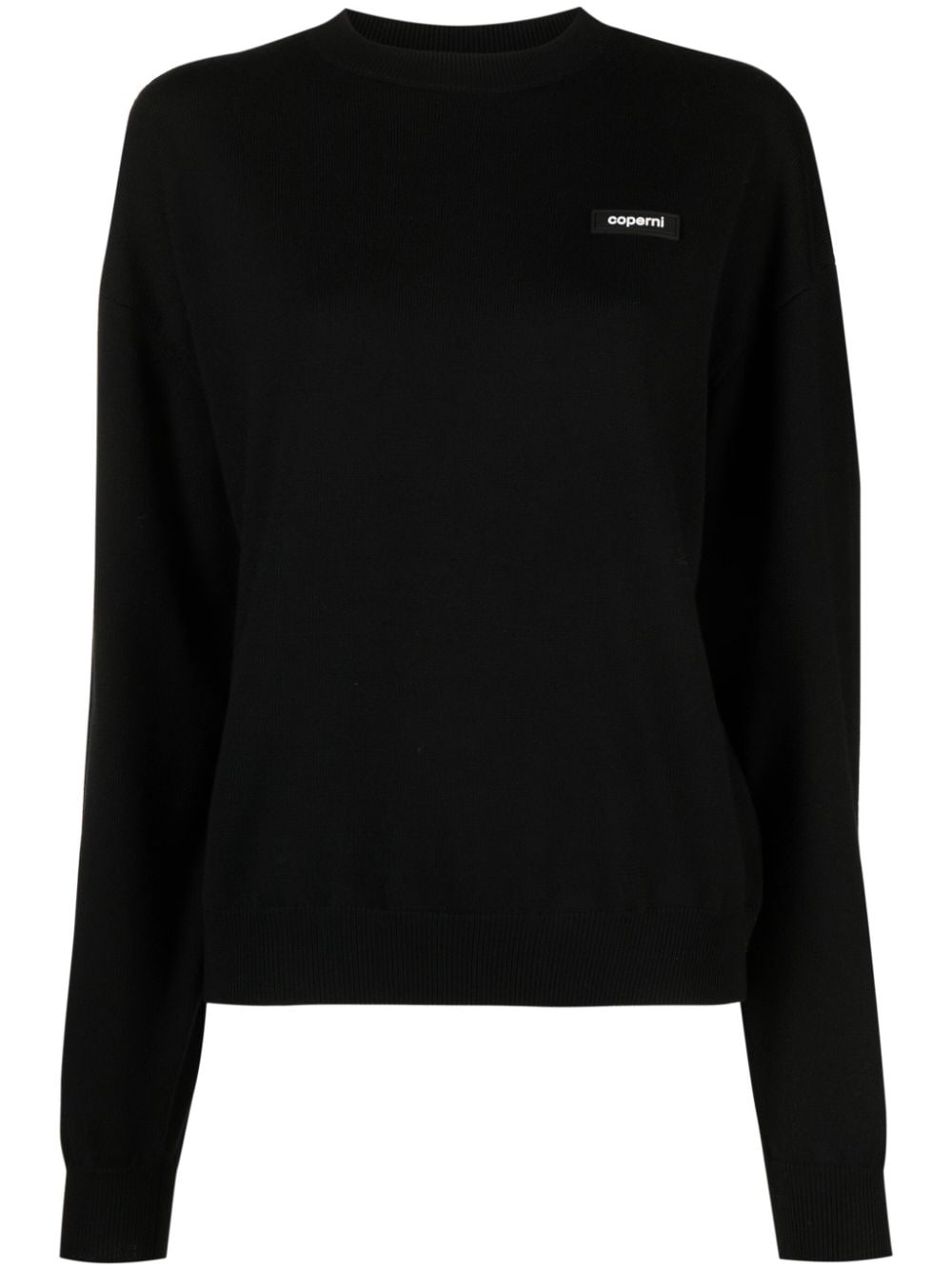 logo-print long-sleeve jumper Tying in with current branding trends, this AW23 collection jumper from Coperni features a logo print at the chest of the garment in a contrasting colourway. Highlights - Black - Wool - Logo print at the chest - Round neck - Long sleeves Made in Italy Composition Wool 100% SIZE & FIT Model measurements Height 5 ft 10 in(1.79 m) Bust/Chest 31.1 in(79 cm) Hips 35.03 in(89 cm) Waist 24.01 in(61 cm) FittingInformation Designed to be unstructured, offering a loose fit throughout The ribbed hem offers a close, comfortable fit Made with a midweight knit, this piece offers some stretch Washing instructions Hand Wash