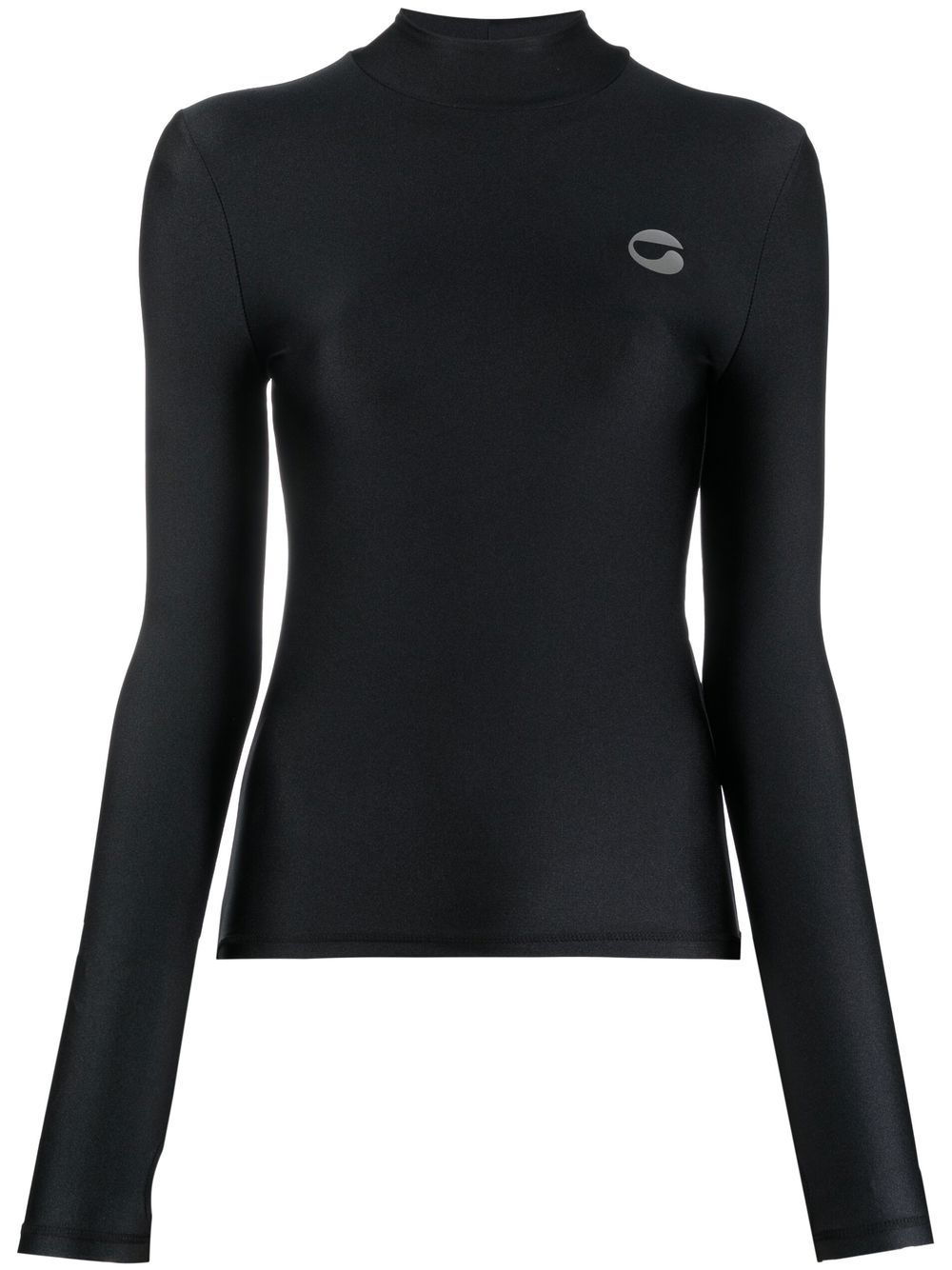 high-neck top Highlights - Black - Stretch-design - Logo print at the chest - Mock neck - Long sleeves - Thumb slots - Straight hem Imported Composition Polyamide 80%, Spandex/Elastane 20% SIZE & FIT Model measurements Height 5 ft 11 in(1.8 m) Bust/Chest 31.49 in(80 cm) Hips 36.61 in(93 cm) Waist 24.4 in(62 cm) FittingInformation This piece fits true to size. We recommend you get your regular size Cut for a close fit Made with a lightweight stretch fabric Measurement SLEEVE LENGTH 27 in(68.6 cm) LENGTH 21.49 in(54.6 cm) WAIST 25.98 in(66 cm) BUST 27.99 in(71.1 cm) Washing instructions Machine Wash