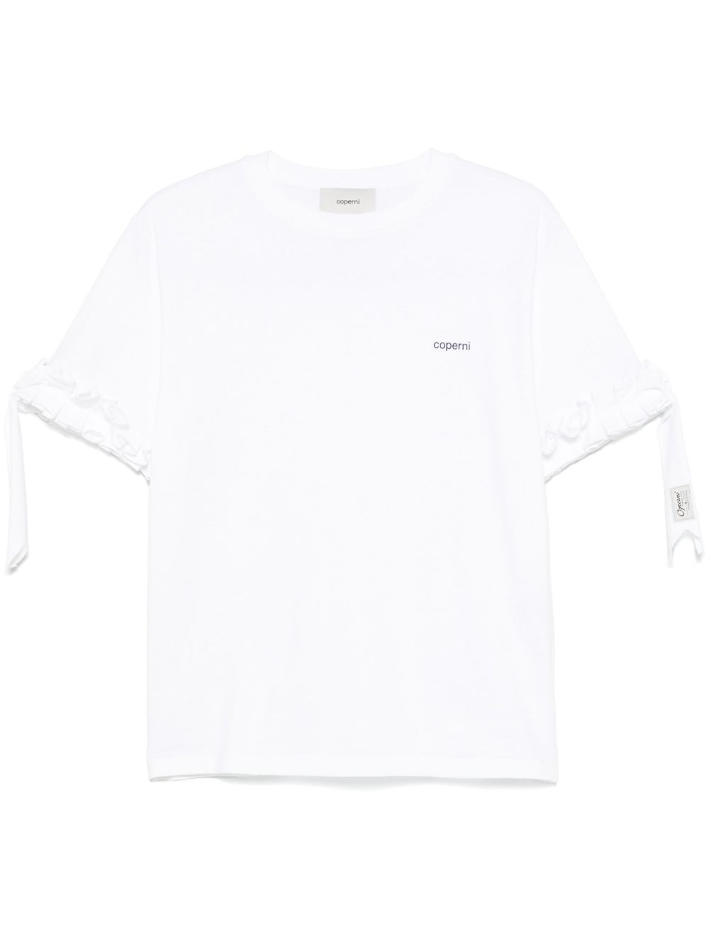 logo-print ruffle-trim T-shirt Highlights - White Imported Composition Organic Cotton 100% SIZE & FIT Model measurements Height 5 ft 11 in(1.8 m) Bust/Chest 31.49 in(80 cm) Hips 36.61 in(93 cm) Waist 24.4 in(62 cm) FittingInformation Designed for a relaxed fit, this piece allows for comfort and movement when worn Made from a midweight non-stretch fabric, this piece offers minimal elasticity when worn