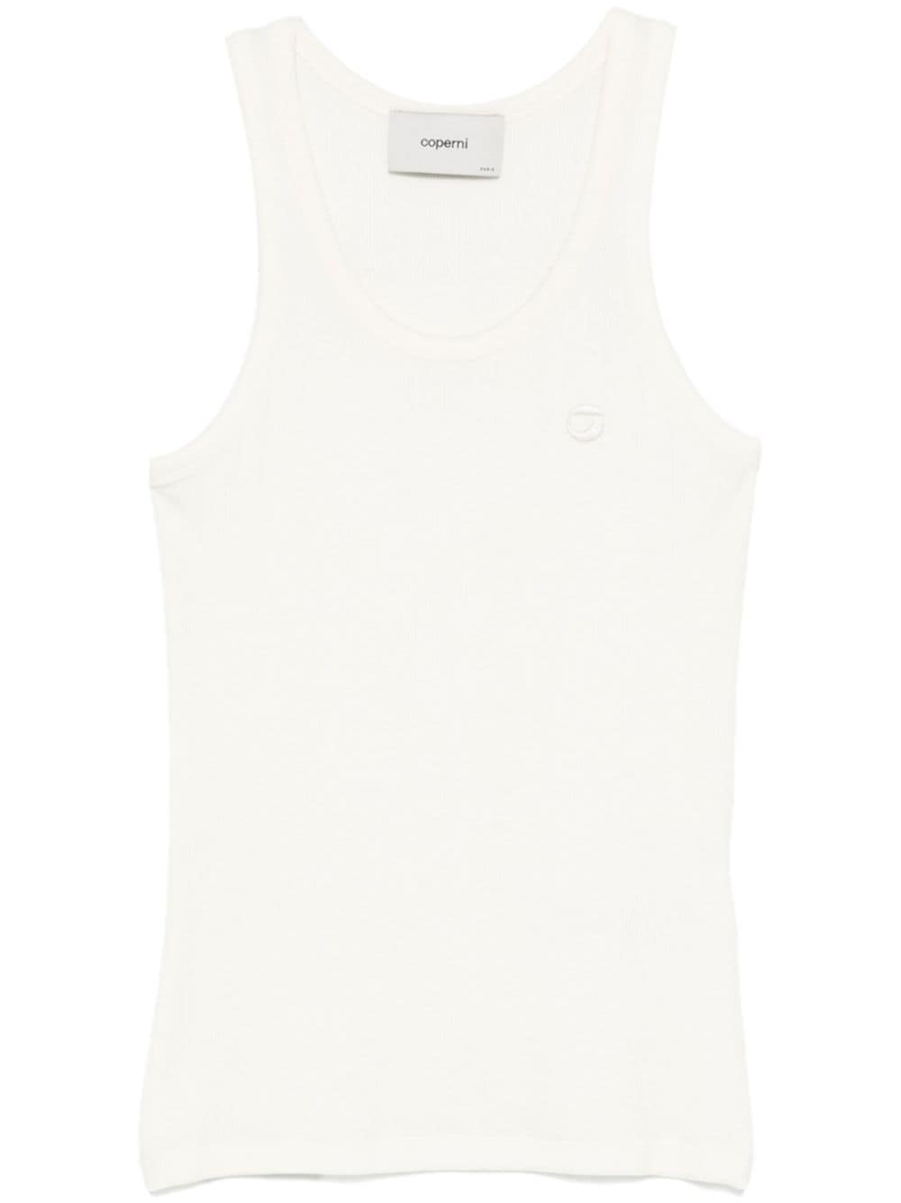 logo ribbed tank top Highlights - Ivory white - Fine ribbed - Embroidered logo at the chest - Scoop neck - Sleeveless - Racerback - Straight hem Imported Composition Viscose 97%, Elastane 3% SIZE & FIT Model measurements Height 5 ft 10 in(1.78 m) Bust/Chest 32.67 in(83 cm) Hips 35.43 in(90 cm) Waist 23.22 in(59 cm) FittingInformation Designed for a close fit throughout Made from a lightweight stretch fabric, this piece offers elasticity and flexibility when worn Washing instructions Machine Wash