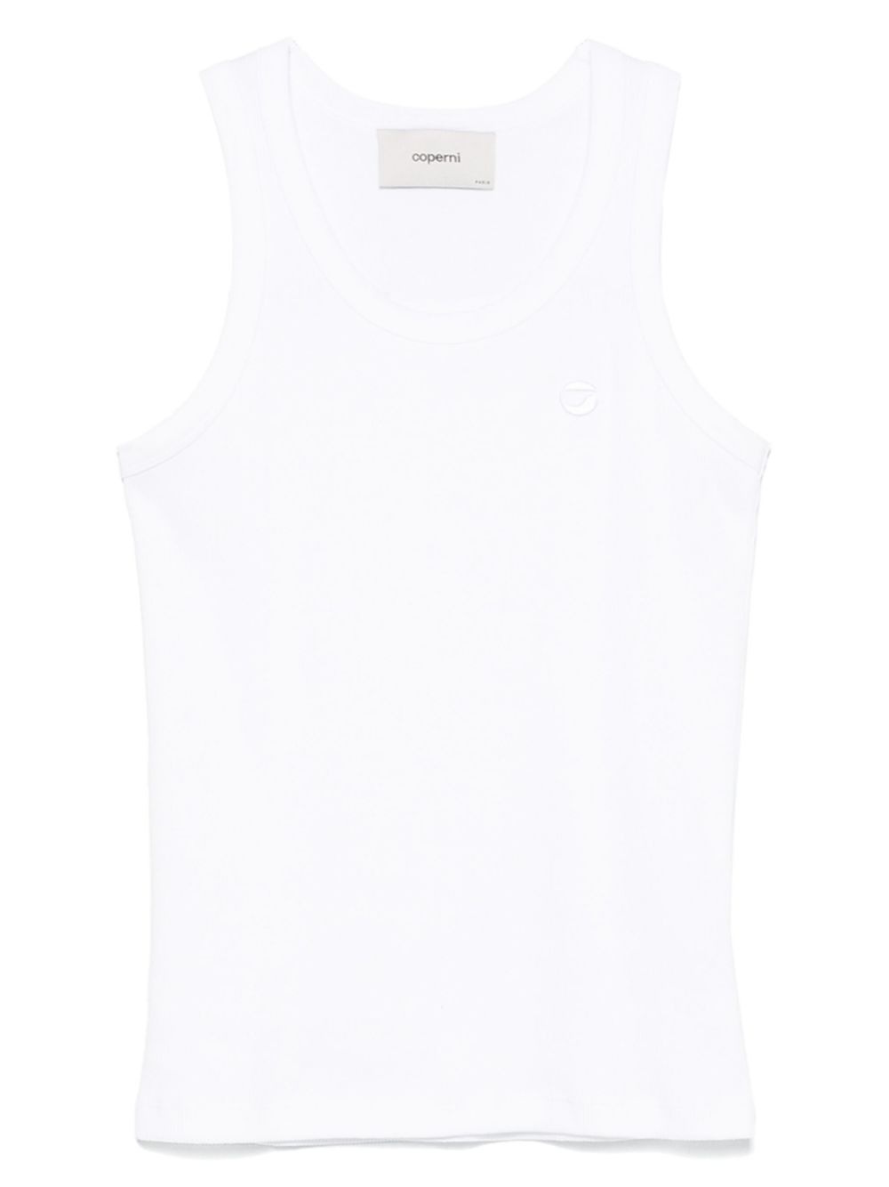 logo ribbed tank top Highlights - White - Crew neck - Sleeveless Imported Composition Organic Cotton 100% SIZE & FIT Model measurements Height 5 ft 10 in(1.78 m) Bust/Chest 31.49 in(80 cm) Hips 37 in(94 cm) Waist 23.62 in(60 cm) FittingInformation Designed for a slim fit that sits just away from the body offering a close yet comfortable fit Made from a midweight non-stretch fabric, this piece offers minimal elasticity when worn