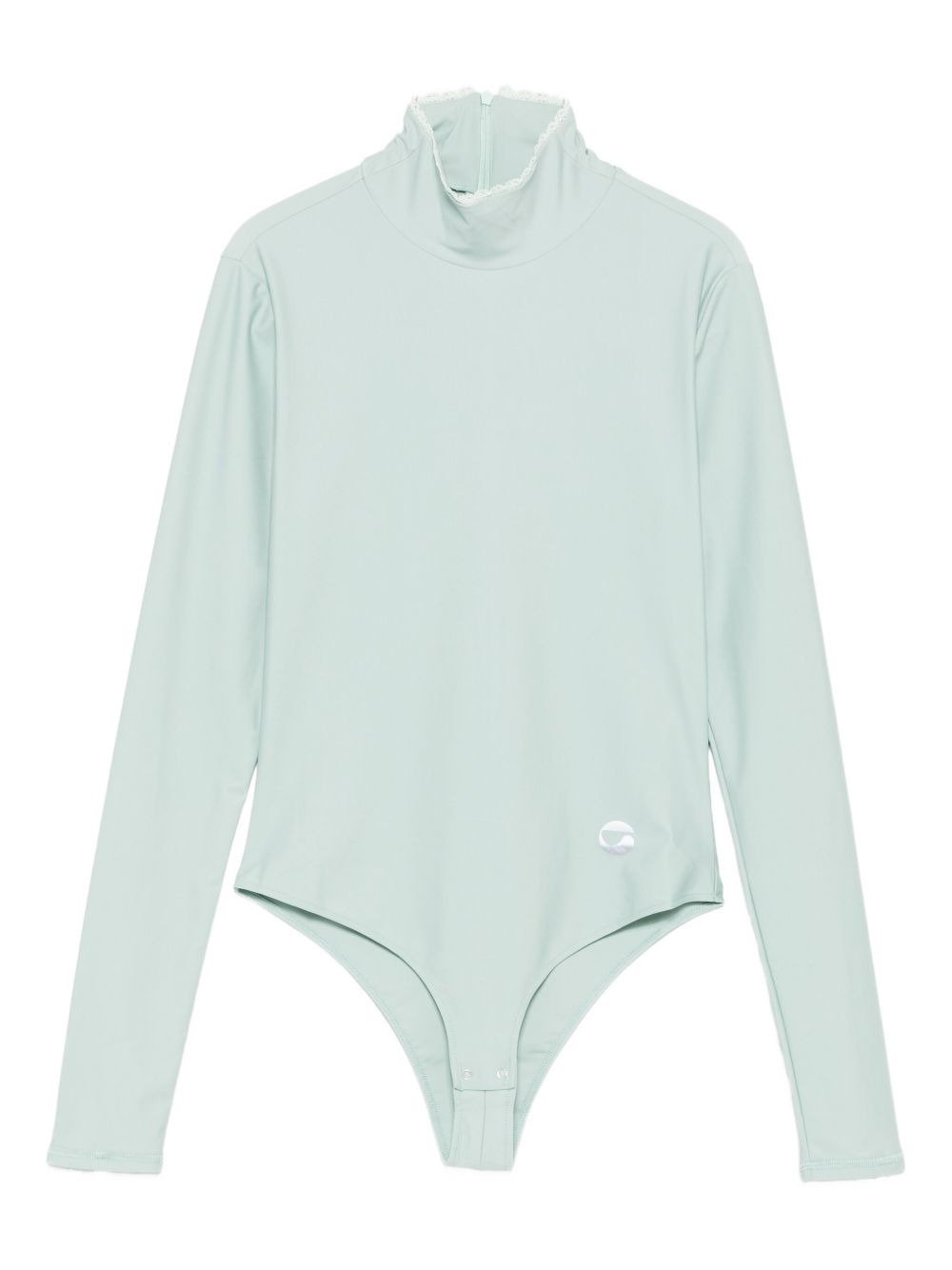 long-sleeved bodysuit Highlights - Green - High neck - Long sleeves - Snap fastening - Close-fitting - Lace trim - Logo detail Imported Composition Fabric 80%, Elastane 20% SIZE & FIT Model measurements Height 5 ft 10 in(1.78 m) Bust/Chest 31.49 in(80 cm) Hips 37 in(94 cm) Waist 23.62 in(60 cm) Washing instructions Read Manufacturer Guidelines