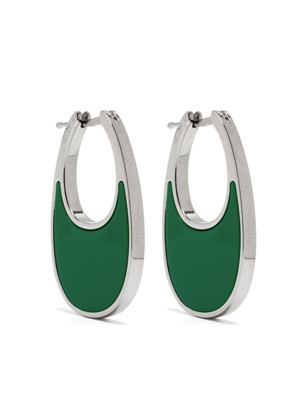 medium Swipe earrings Highlights - Silver-tone/green - Brass - Lacquered finish - Lever fastening - Engraved logo - For pierced ears - These earrings come as a pair. Made in Italy SIZE & FIT Measurement HEIGHT 1.25 in(3.2 cm) Weight (single earring) 5 g(5 g) WIDTH 0.11 in(0.3 cm)