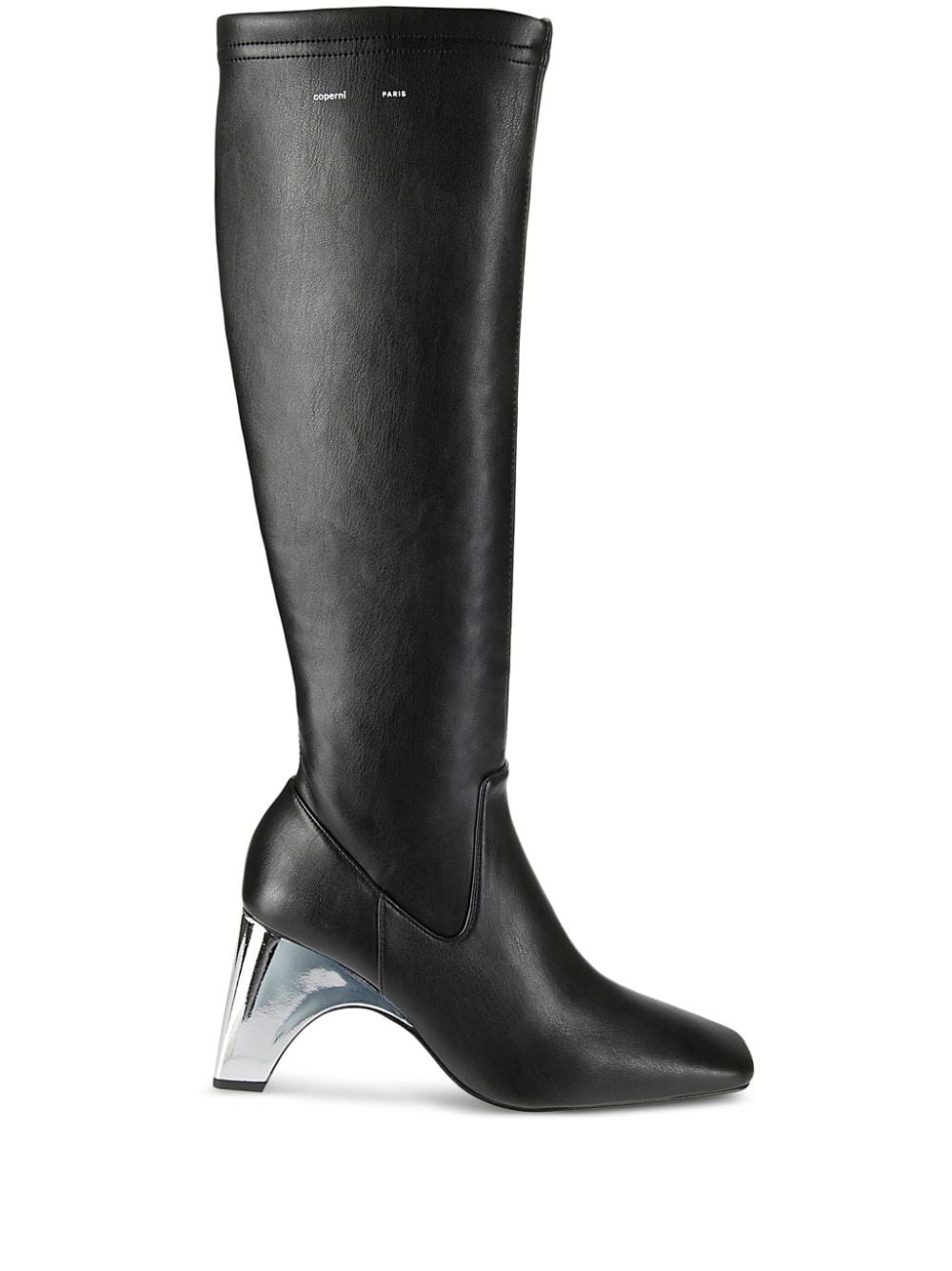 Metal Bridge stretch boots Highlights - Black - Calf leather - Stretch-design - Side zip fastening - Sculpted metallic heel - Logo print to the side - Knee-high - Square toe - Branded leather insole - Leather outsole Imported Composition Sole: Leather 100% Outer: Calf Leather 100% Lining: Calf Leather 100%