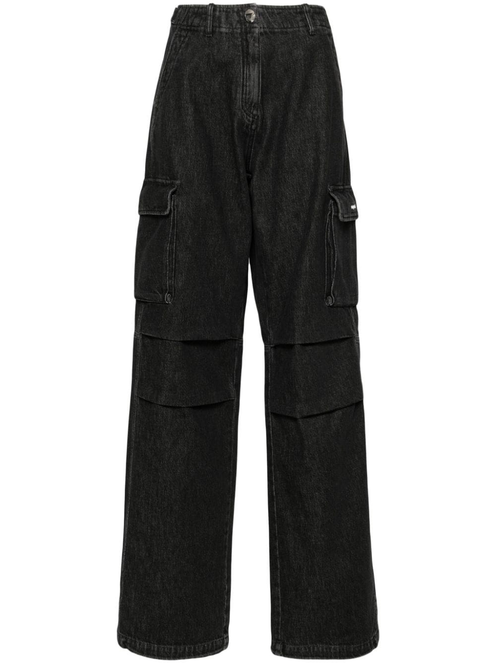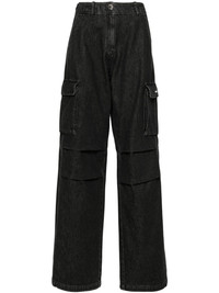 mid-rise wide-leg jeans Highlights - Black - Cotton - Denim - Logo patch to the side - Logo patch to the rear - Logo-shaped silver-tone buttons - Pleat detailing - Wide leg - Mid-rise - Front press-stud and zip fastening - Belt loops - Adjustable waist straps - Two diagonal pockets to the sides - Multiple cargo pockets - Straight hem Made in Italy Composition Lining: Polyester 65%, Cotton 35% Outer: Cotton 100%