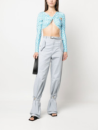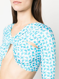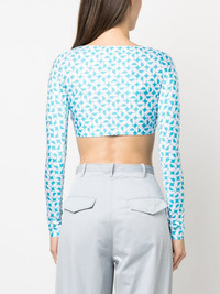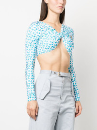 patterned ruched cropped top blue/white abstract pattern print ruched detailing long sleeves cropped Imported Composition Polyamide 80%, Elastane 20% SIZE & FIT Model measurements Height 5 ft 10 in(1.77 m) Bust/Chest 35.03 in(89 cm) Hips 35.03 in(89 cm) Waist 23.62 in(60 cm) FittingInformation This piece fits true to size. We recommend you get your regular size Cut for a close fit Made with a mid-weight stretch fabric Washing instructions Machine Wash