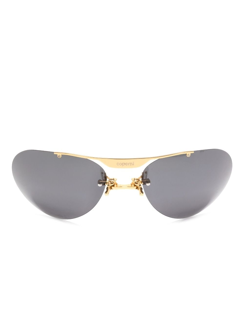 pilot-frame clip-on sunglasses Crafted in a sleek pilot-frame silhouette, these tinted sunglasses from Coperni boast practicality thanks to their adaptable, clip-on design. Highlights - Black - Gold-tone hardware - Engraved logo - Grey tinted lenses - Double bridge - Clip-on design - These glasses come with a protective case. Imported Composition Acetate 100% SIZE & FIT Measurement Bridge Width 1.02 in(2.6 cm) Lens Diameter 2.36 in(6 cm) WIDTH 5.35 in(13.6 cm)