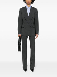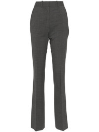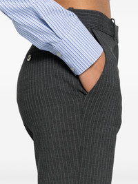 pinstripe tailored trousers Highlights - Dark grey - Virgin wool blend - Pinstripe pattern - Tailored design - Belt loops - Two diagonal pockets to the sides - Pressed crease - Rear welt pocket - Straight leg - Concealed front button, hook and zip fastening Made in France Composition Virgin Wool 96%, Spandex/Elastane 4% SIZE & FIT Model measurements Height 5 ft 10 in(1.78 m) Bust/Chest 32.67 in(83 cm) Hips 35.43 in(90 cm) Waist 23.22 in(59 cm) FittingInformation Designed for a slim fit, these trousers offer a close fit at the waist, allowing a comfortable close fit and some movement over the leg Made from a midweight stretch fabric, this piece offers elasticity and flexibility when worn This piece fits true to size – take your usual size Washing instructions Dry Clean Only