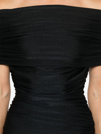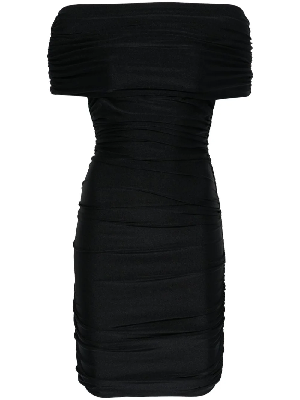 pleated off-shoulder mini dress Highlights - Black - Stretch-jersey - Pleat detailing - Off-shoulder - Cowl neck - Ruched bodice - Straight hem - Thigh-length Made in France Composition Polyamide 80%, Spandex/Elastane 20% SIZE & FIT Model measurements Height 5 ft 11 in(1.8 m) Bust/Chest 33.07 in(84 cm) Hips 37.4 in(95 cm) Waist 25.19 in(64 cm) FittingInformation Designed for a close fit throughout Made from a midweight stretch fabric, this piece offers elasticity and flexibility when worn Washing instructions Machine Wash