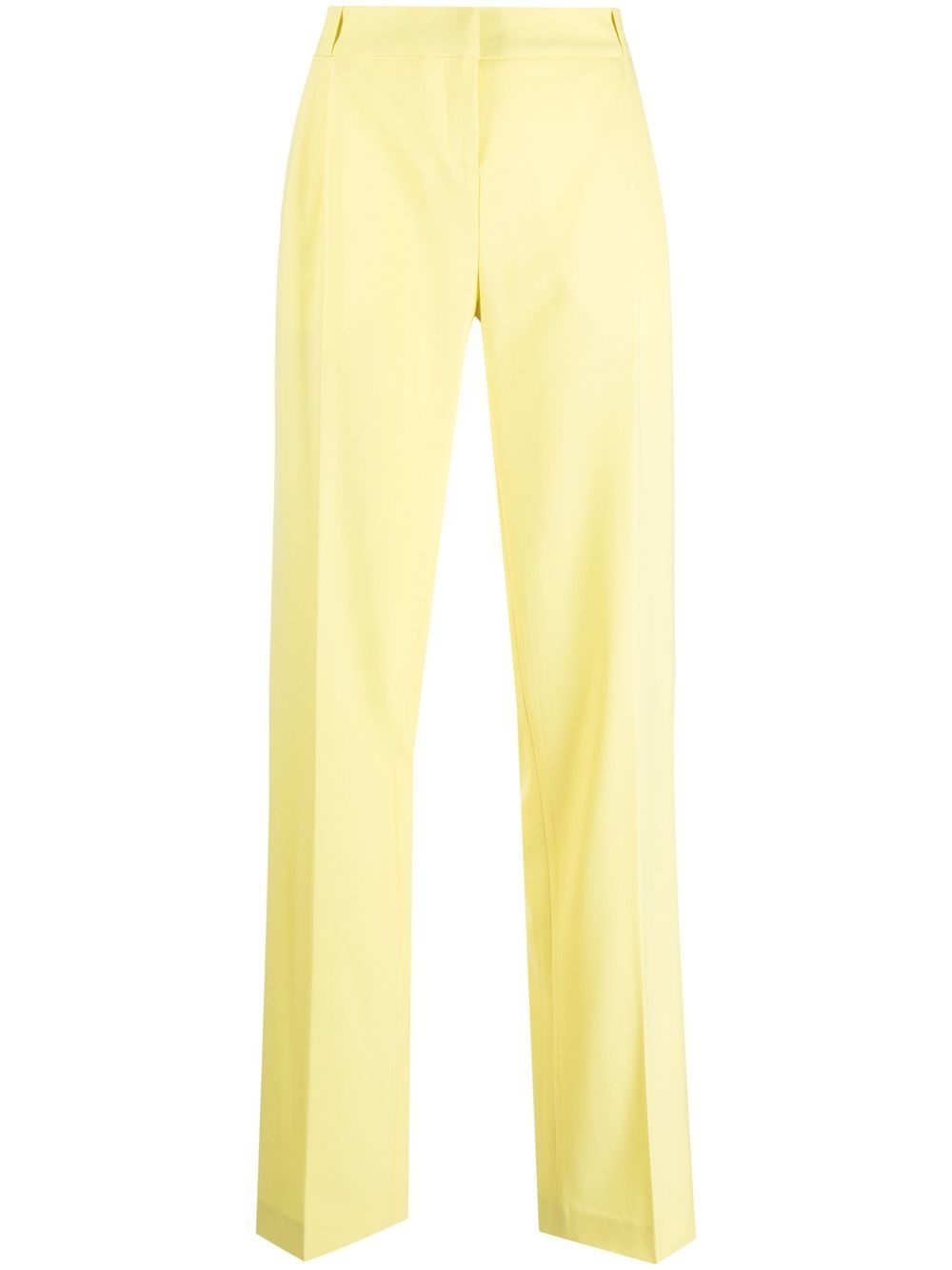 pressed twill trousers canary yellow concealed front fastening belt loops straight leg Imported Composition Polyester 53%, Virgin Wool 43%, Spandex/Elastane 4% SIZE & FIT Measurement INSIDE LEG 34.25 in(87 cm) HIPS 38.58 in(98 cm) WAIST 34.64 in(88 cm) Washing instructions Dry Clean Only
