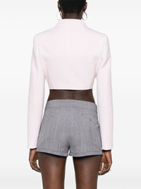 Prince of Wales-print jacket Sharp and edgy, this pink cropped jacket encapsulates Coperni's singular aesthetic. It's tailored from virgin wool with a subtle Prince of Wales pattern, boasting structured shoulders and a shortened pointed collar. Highlights - Pink/white - Virgin wool - Prince of wales check pattern - Faux pointed flat collar - Shoulder pads - Long sleeves - Straight hem - Cropped - Full lining - Front button fastening Imported Composition Outer: Virgin Wool 100% Lining: Viscose 100% SIZE & FIT Model measurements Height 5 ft 11 in(1.8 m) Bust/Chest 32.67 in(83 cm) Hips 36.22 in(92 cm) Waist 24.4 in(62 cm) FittingInformation Designed for a slim fit that sits just away from the body offering a close yet comfortable fit The internal shoulder pads offer a structured shape Made from a midweight non-stretch fabric This piece fits true to size – take your usual size
