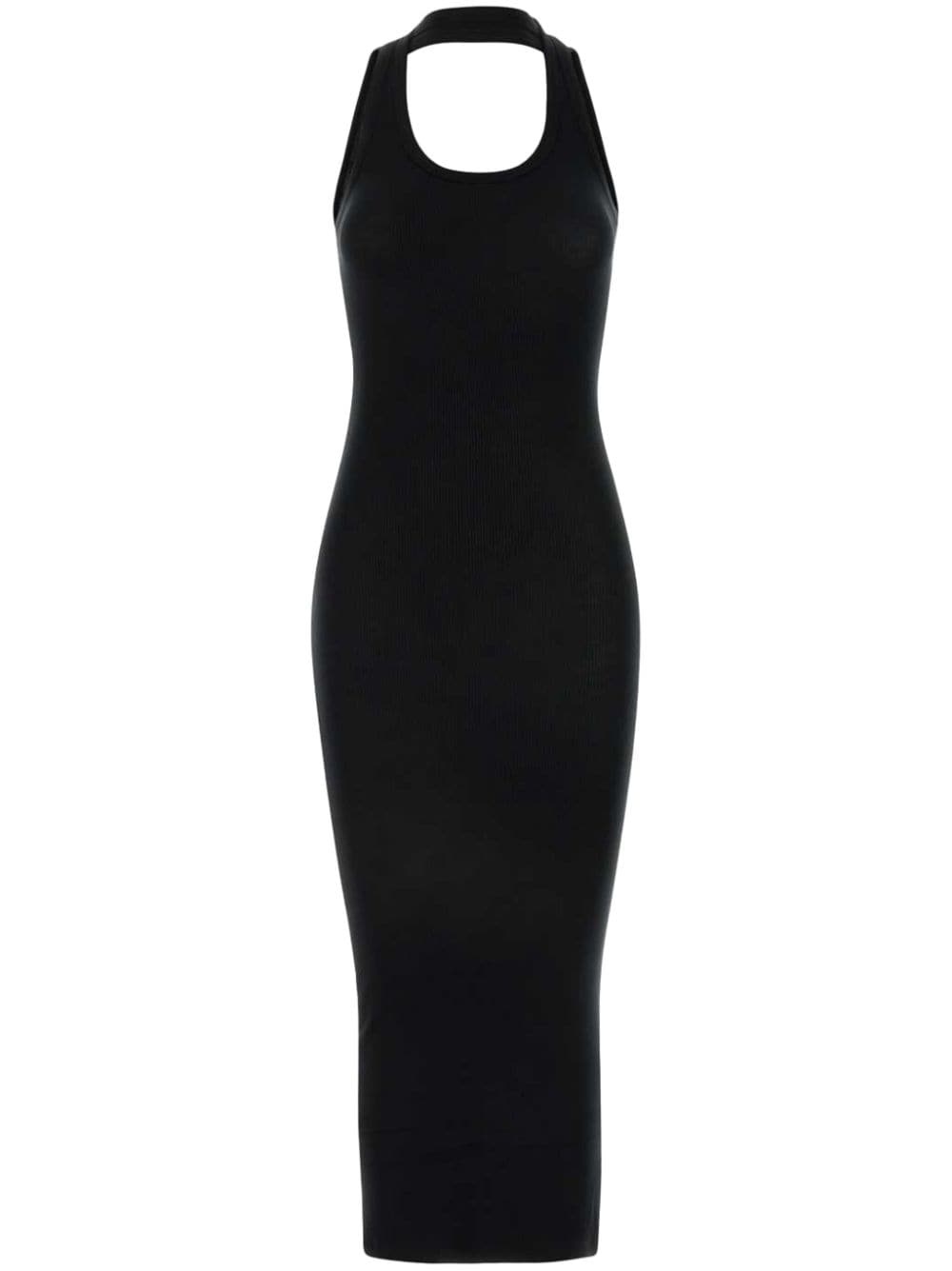 ribbed maxi dress Highlights - Black - Ribbed knit - Choker-style neckline - Plunging u-neck - Sleeveless - Fitted waistline - Scoop back - Unlined - Straight hem - Long length Made in Italy Composition Viscose 97%, Elastane 3% Washing instructions Read Manufacturer Guidelines
