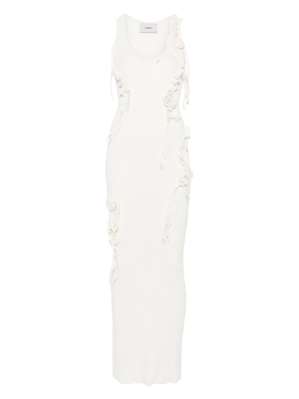 ribbon-detail knitted maxi dress Highlights - White - Slip-on style - Floral motif - Distressed effect - Fine ribbed Made in Italy Composition Viscose 90%, Polyamide 9%, Elastane 1% Washing instructions Hand Wash