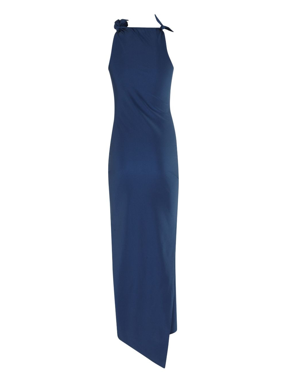 rose-embellished asymmetrical maxi dress Highlights - Dark blue - Asymmetrical hem - Rose embellishments - Sleeveless Imported Composition Polyamide 80%, Elastane 20% Washing instructions Read Manufacturer Guidelines