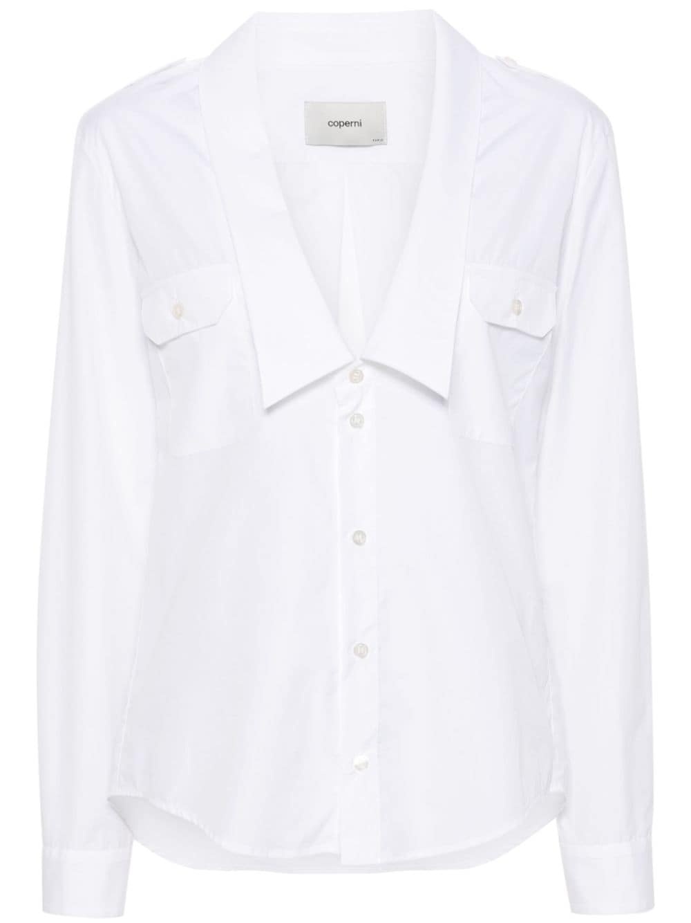 Saharan shirt Highlights - White - Cotton - Poplin texture - Front button fastening - V-neck - Spread collar - Epaulettes - Long sleeves - Buttoned cuffs - Two chest flap pockets - Box-pleat detail - Curved hem Imported Composition Cotton 100% SIZE & FIT Model measurements Height 5 ft 10 in(1.78 m) Bust/Chest 33.85 in(86 cm) Hips 36.61 in(93 cm) Waist 26.77 in(68 cm) FittingInformation Designed for a relaxed fit, this piece allows for comfort and movement when worn Made from a midweight non-stretch fabric
