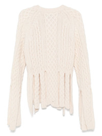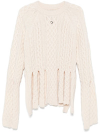 Shredded sweater Highlights - Light beige - Lambs wool - Chunky cable knit - Crew neck - Long sleeves - Signature c logo plaque - Cut-out detailing - High-low hem Imported Composition Lambs Wool 80%, Polyamide 20%
