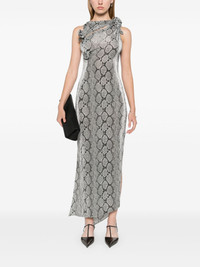 Snake-Print Flower gown Highlights - Grey - Stretch-design - Lame effect - All-over snakeskin print - Floral applique - Round neck - Knot detailing - Sleeveless - Cut-out detailing - Side slits - Asymmetric hem - Long length Made in France Composition Polyamide 80%, Polyester 20% SIZE & FIT Model measurements Height 5 ft 9 in(1.75 m) Bust/Chest 31.88 in(81 cm) Hips 34.64 in(88 cm) Waist 24.01 in(61 cm) FittingInformation Designed for a close fit throughout Made from a lightweight non-stretch fabric, this piece offers minimal elasticity when worn Washing instructions Machine Wash