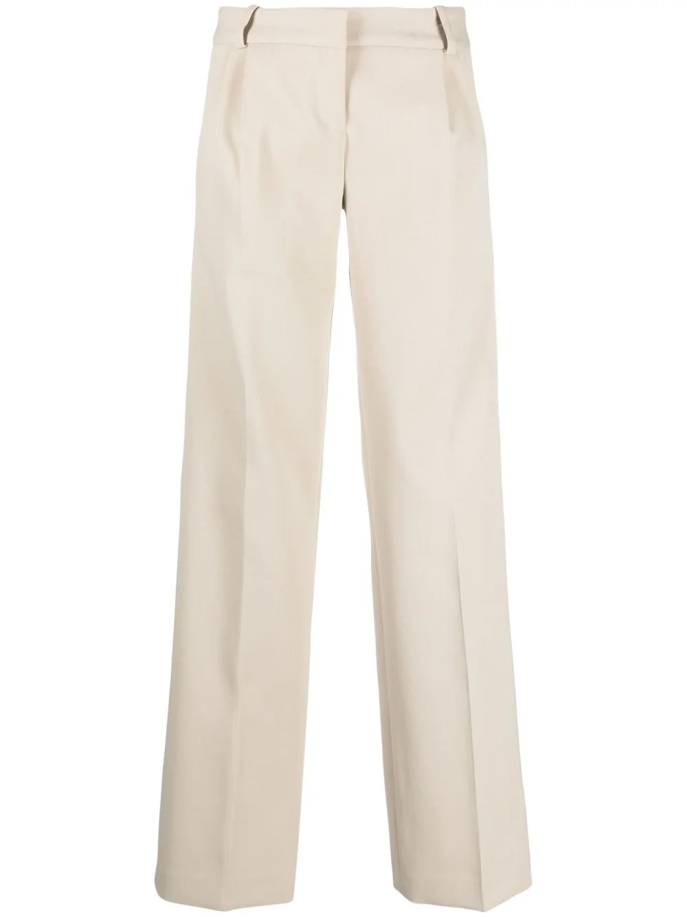 straight-leg tailored trousers Cut to a tailored design, Coperni's low-rise trousers are delivered in a light beige colourway. The straight-leg pair is detailed with a pressed crease to the front and rear. Highlights - Light beige - Recycled polyester blend - Low-rise - Belt loops - Concealed front fastening - Two side slash pockets - Rear welt pocket - Pressed crease - Straight leg Imported Composition Recycled Polyester 50%, Viscose 34%, Polyester 14%, Elastane 2% SIZE & FIT Model measurements Height 5 ft 11 in(1.8 m) Bust/Chest 31.49 in(80 cm) Hips 36.22 in(92 cm) Waist 25.59 in(65 cm) FittingInformation Designed for a straight-leg fit, these trousers allow for a close fit at the waist and an unrestricted, comfortable fit over the leg Made from a midweight stretch fabric, this piece offers elasticity and flexibility when worn This piece fits true to size – take your usual size