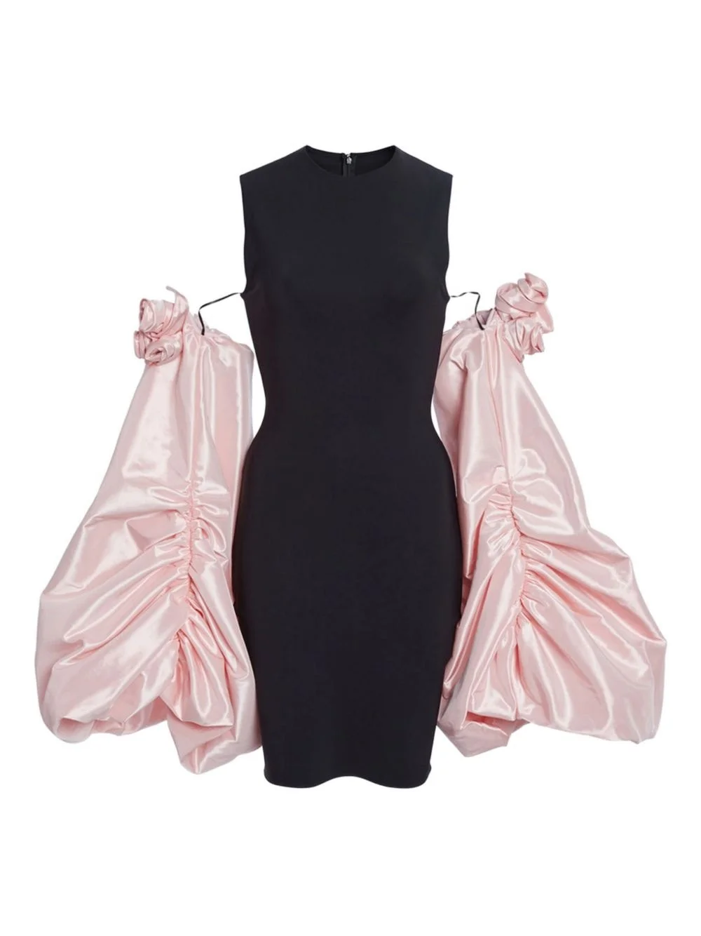 taffeta sleeved dress Highlights - Black - Rear zip fastening - Crew neck - Floral applique - Taffeta Made in France Composition Silicone 100% Washing instructions Read Manufacturer Guidelines