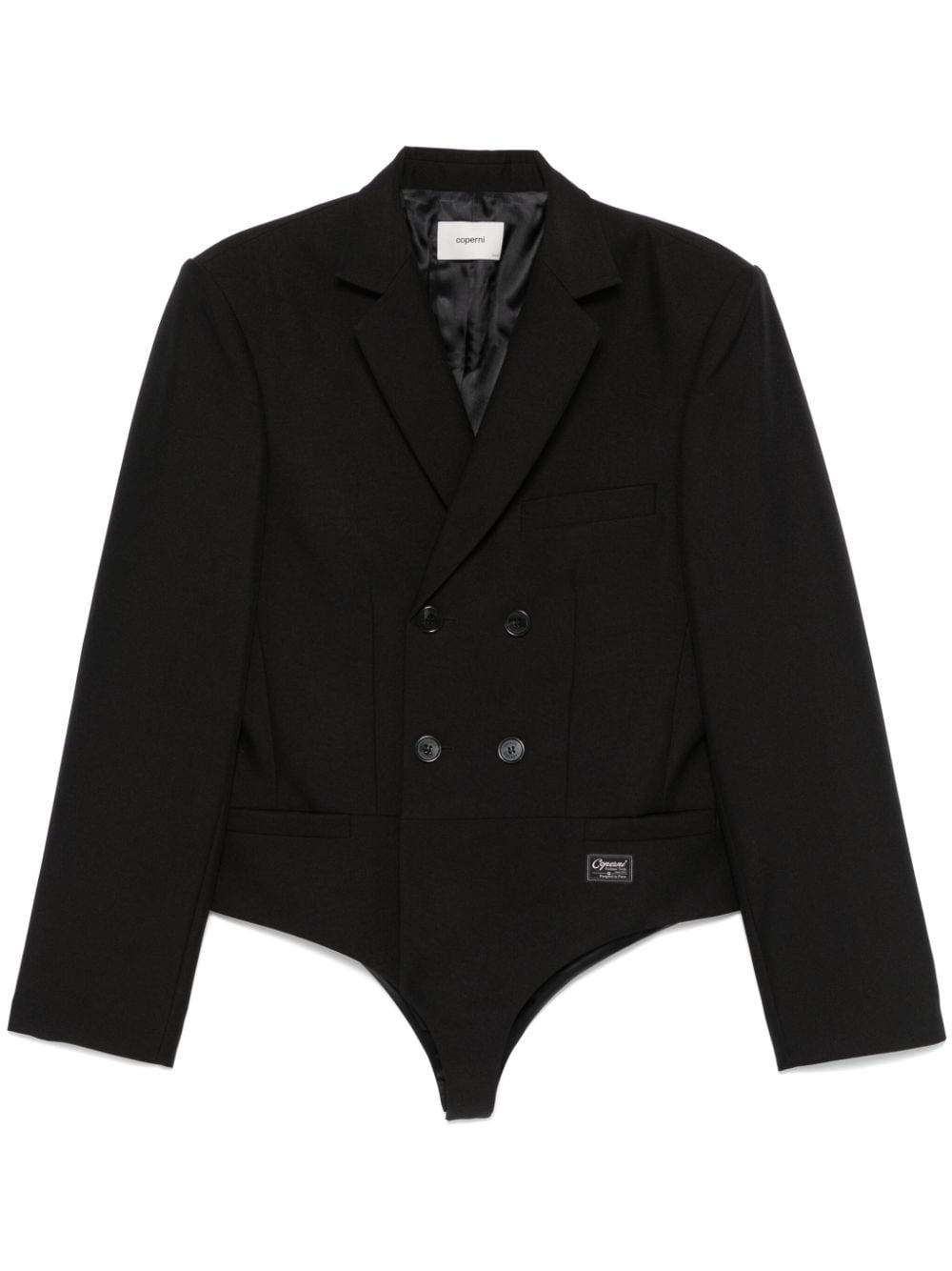 tailored body jacket Highlights - Black - Recycled polyester - Textured finish - Double-breasted button fastening - Concealed front press-stud fastening - Notched lapels - Shoulder pads - Long sleeves - Buttoned cuffs - Chest welt pocket - Dart detailing - Two front welt pockets - Logo patch to the front - Full lining Imported Composition Outer: Recycled Polyester 100% Lining: Viscose 52%, Cupro 48% SIZE & FIT Model measurements Height 5 ft 9 in(1.75 m) Bust/Chest 34.64 in(88 cm) Hips 36.61 in(93 cm) Waist 26.37 in(67 cm) FittingInformation Designed for a relaxed fit, this piece allows for comfort and movement when worn The internal shoulder pads offer a structured shape Made from a midweight non-stretch fabric