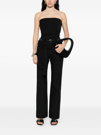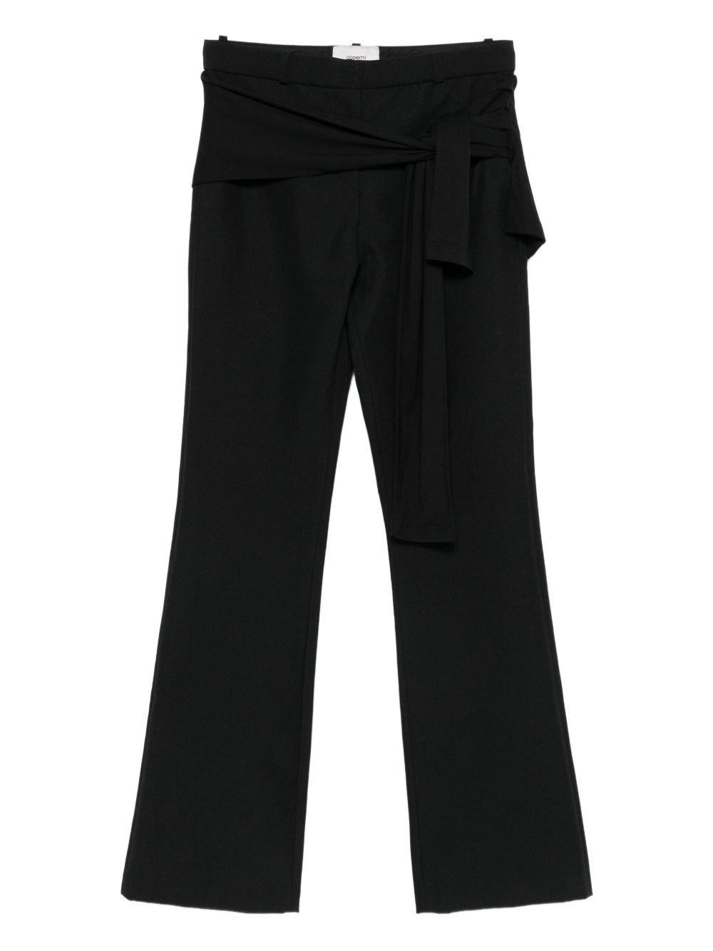 tie-waist trousers Highlights - Black - Tie waist - Flared legs - Belt loops Imported Composition Recycled Polyester 100%, Modal 50%, Cotton 50% SIZE & FIT Model measurements Height 5 ft 9 in(1.75 m) Bust/Chest 32.67 in(83 cm) Hips 36.22 in(92 cm) Waist 24.8 in(63 cm) Washing instructions Dry Clean Only