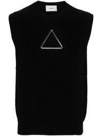 Triangle sleeveless knitted top Highlights - Black - Merino wool - Knitted construction - Ribbed trim - Crew neck - Sleeveless - Front triangle cut-out detailing - Silver-tone hardware - Ribbed hem - When buying this unisex item, keep in mind that it is graded in standard men's sizing. Made in Italy Composition Merino 100% SIZE & FIT Model measurements Height 5 ft 10 in(1.77 m) Bust/Chest 32.28 in(82 cm) Hips 35.03 in(89 cm) Waist 25.19 in(64 cm) FittingInformation This unisex piece is designed for a relaxed fit whether you usually select women's or men's sizes The ribbed hem offers a close, comfortable fit Made with a midweight knit, this piece offers some stretch