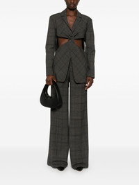 wide-leg tailored trousers Highlights - Anthracite grey - Virgin wool blend - Plaid check pattern - Silver-tone logo plaque - Concealed front button, hook and zip fastening - Belt loops - Pleat detailing - Pressed crease - Wide leg - Two side slit pockets - Rear welt pocket Imported Composition Outer: Virgin Wool 95%, Elastane 5% Lining: Viscose 52%, Cupro 48% SIZE & FIT Model measurements Height 5 ft 10 in(1.77 m) Bust/Chest 32.28 in(82 cm) Hips 35.03 in(89 cm) Waist 25.19 in(64 cm) FittingInformation Designed with a wide-leg cut, these trousers allow for a close fit at the waist and offer a loose and roomy fit over the leg Made from a midweight stretch fabric, this piece offers elasticity and flexibility when worn This piece fits true to size – take your usual size