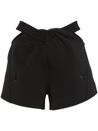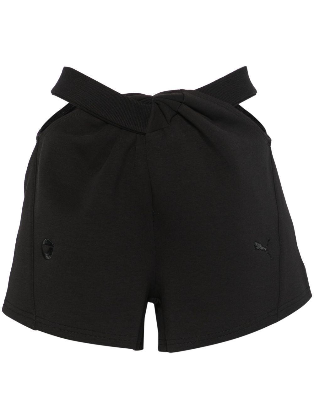 x Puma twist-detail shorts Highlights - Black - Elasticated waistband - Side slits - Embroidered logo to the front - Cut-out detailing Imported Composition Polyester 56%, Cotton 39%, Elastane 5% SIZE & FIT Model measurements Height 5 ft 10 in(1.77 m) Bust/Chest 32.28 in(82 cm) Hips 35.03 in(89 cm) Waist 25.19 in(64 cm) FittingInformation Designed for a slim fit that sits just away from the body offering a close yet comfortable fit The elasticated waist allows for a comfortable fit Made from a midweight stretch fabric, this piece offers elasticity and flexibility when worn Washing instructions Machine Wash