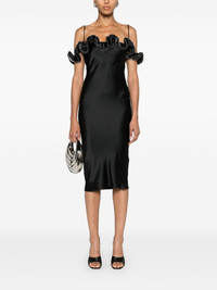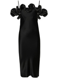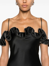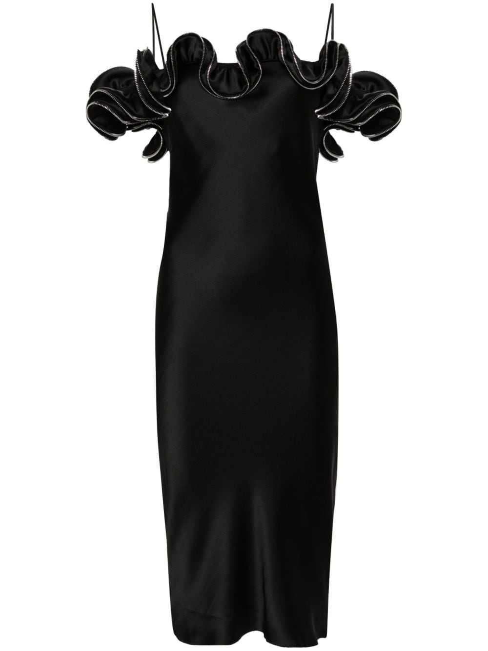 zipped-ruffles satin dress Highlights - Black - Satin finish - Decorative zip detailing - Ruffled detailing - Cold-shoulder design - Spaghetti straps - Sleeveless - Rear button fastening - Straight hem - Knee-length Made in France Composition Polyester 100% SIZE & FIT Model measurements Height 5 ft 10 in(1.78 m) Bust/Chest 33.07 in(84 cm) Hips 36.61 in(93 cm) Waist 24.8 in(63 cm) FittingInformation Designed for a slim fit that sits just away from the body offering a close yet comfortable fit Made from a midweight non-stretch fabric This piece fits true to size – take your usual size