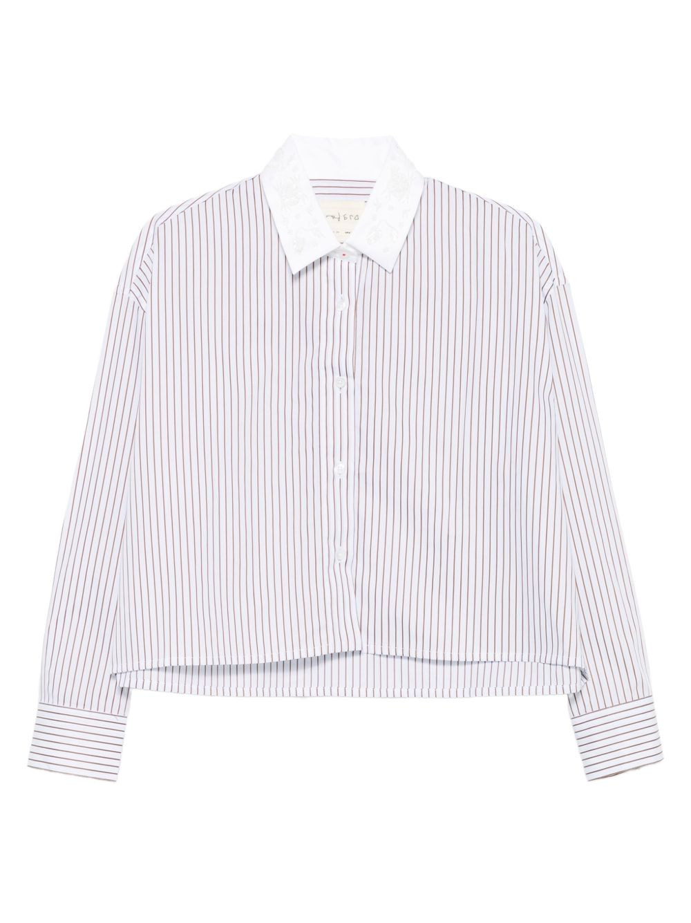 striped shirt Highlights - White - Striped - Contrasting collar - Front button fastening - Long sleeves - Buttoned cuffs Imported Composition Cotton 100% SIZE & FIT Model measurements Height 5 ft 11 in(1.8 m) Bust/Chest 30.7 in(78 cm) Hips 35.23 in(89.5 cm) Waist 25.19 in(64 cm) Washing instructions Read Manufacturer Guidelines