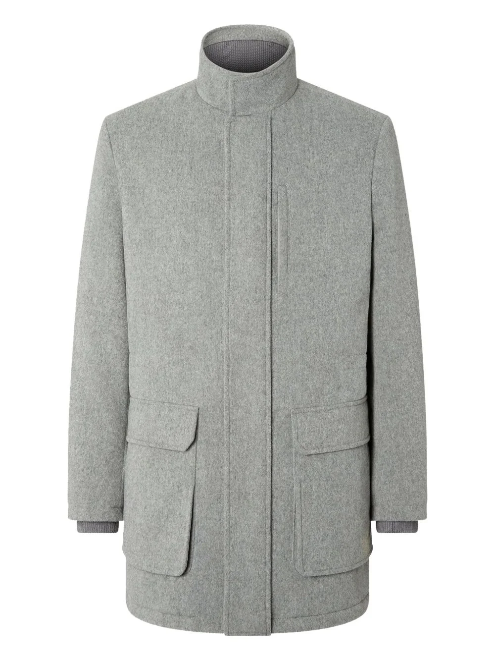 flap-pocket wool jacket Highlights - Grey - High neck - Flap pockets - Concealed fastening - Long sleeves Imported Composition Virgin Wool 100% Washing instructions Read Manufacturer Guidelines