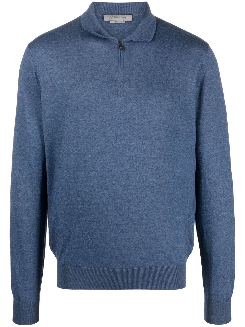 half-zip sweatshirt Highlights - Blue - Cotton-cashmere blend - Polo collar - Long sleeves Made in Italy Composition Cotton 50%, Cashmere 30%, Silk 20% SIZE & FIT Model measurements Height 6 ft 2 in(1.88 m) Bust/Chest 36.61 in(93 cm) Hips 35.82 in(91 cm) Waist 27.95 in(71 cm) FittingInformation This piece fits true to size. We recommend you get your regular size Cut for a relaxed fit Made with a mid-weight fabric