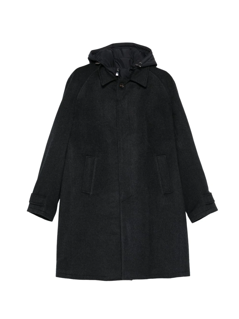 hooded pocket coat Highlights - Dark anthracite - Hood - Point collar - Flap pockets - Tab cuffs - Button fastening Made in Italy Composition Outer: Virgin Wool 100%, Polyester 100% Lining: Polyester 100% Washing instructions Dry Clean Only