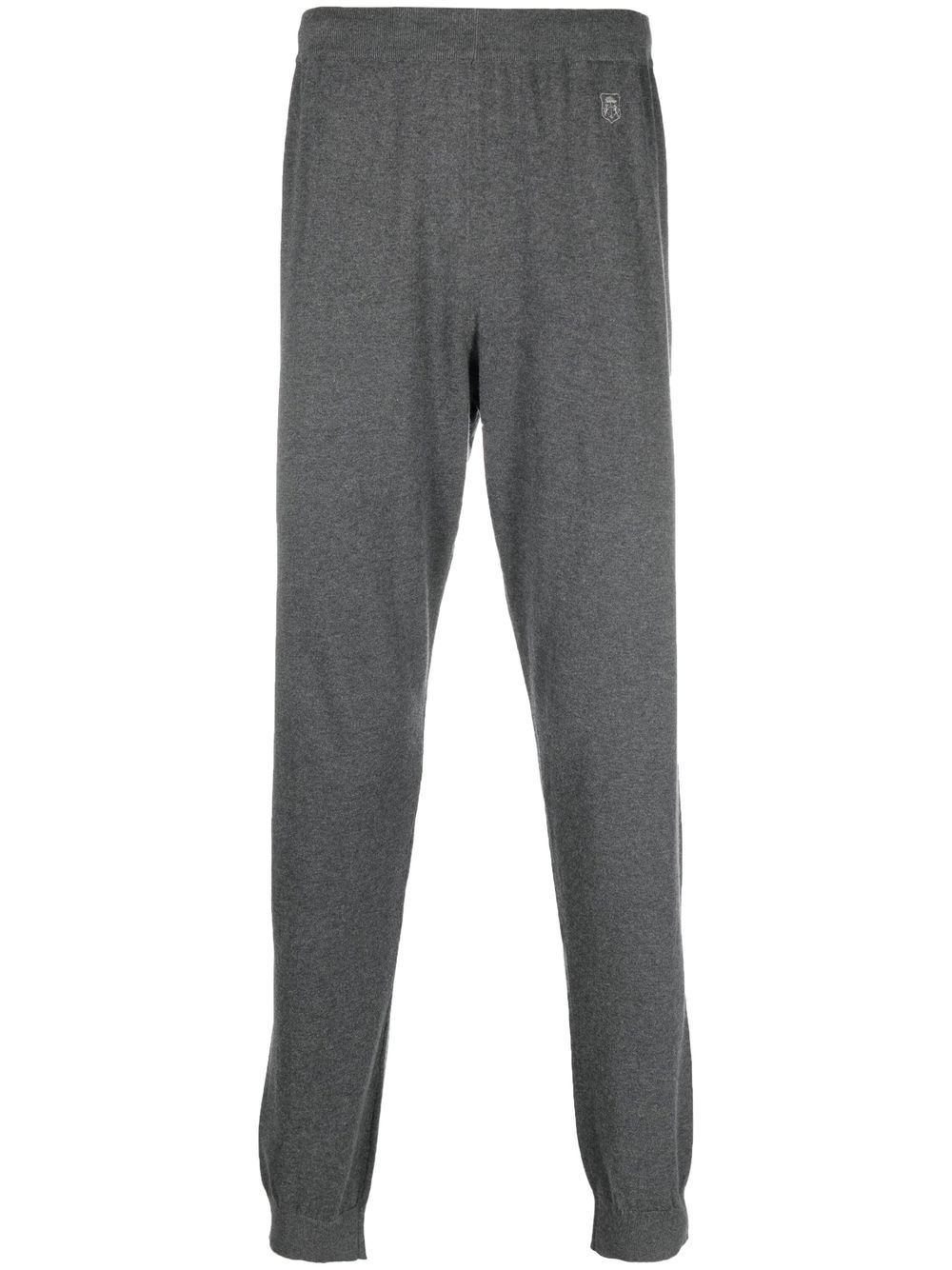 jersey-knit track pants blue-grey cotton-cashmere blend jersey knit embroidered logo to the front elasticated ankles Made in Italy Composition Cotton 85%, Cashmere 15% SIZE & FIT Model measurements Height 6 ft 2 in(1.87 m) Bust/Chest 35.82 in(91 cm) Hips 35.43 in(90 cm) Waist 27.95 in(71 cm) FittingInformation This piece fits true to size. We recommend you get your regular size Cut for a slim fit Made with a mid-weight fabric
