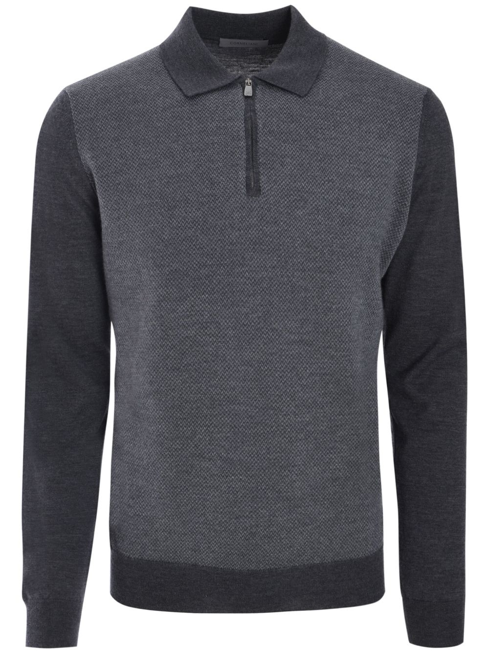 knitted polo shirt Highlights - Grey - Virgin wool - Knitted construction - Half front zip fastening - Polo collar - Long sleeves - Straight hem Made in Italy Composition Virgin Wool 100%
