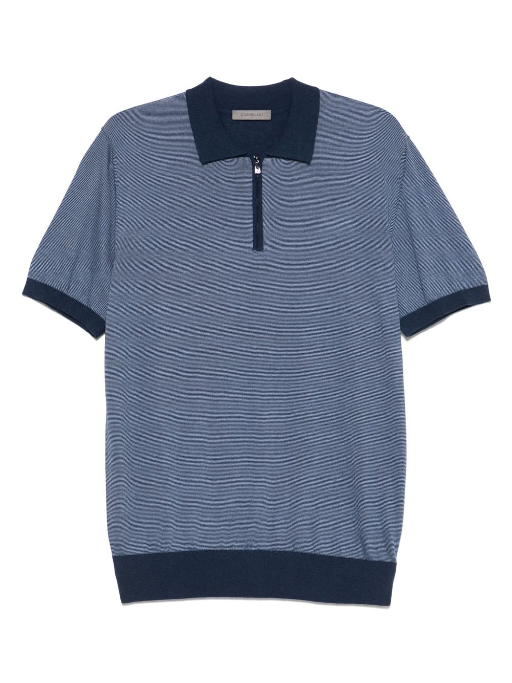 knitted polo shirt Highlights - Blue - Half front zip fastening - Short sleeves - Ribbed hem Made in Italy Composition Cotton 80%, Silk 20%